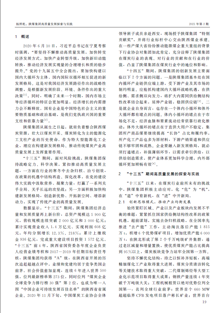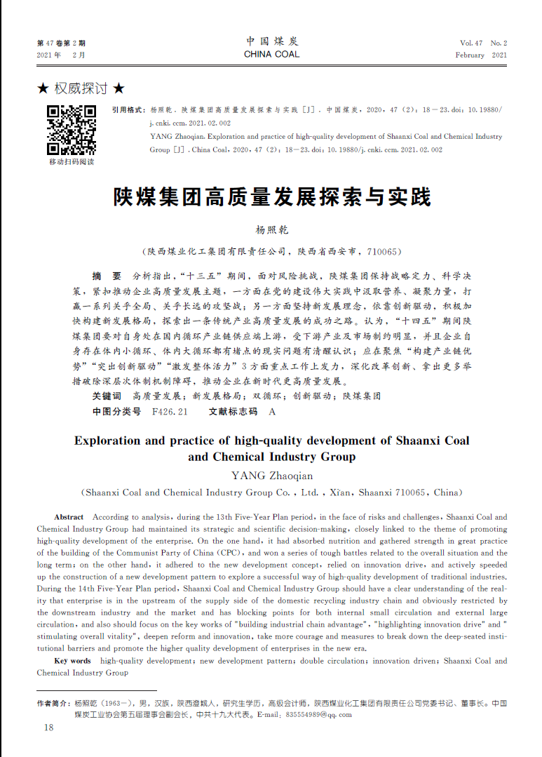 《中國煤炭》(楊照乾署名文章):陜煤集團高質量發展探索與實踐